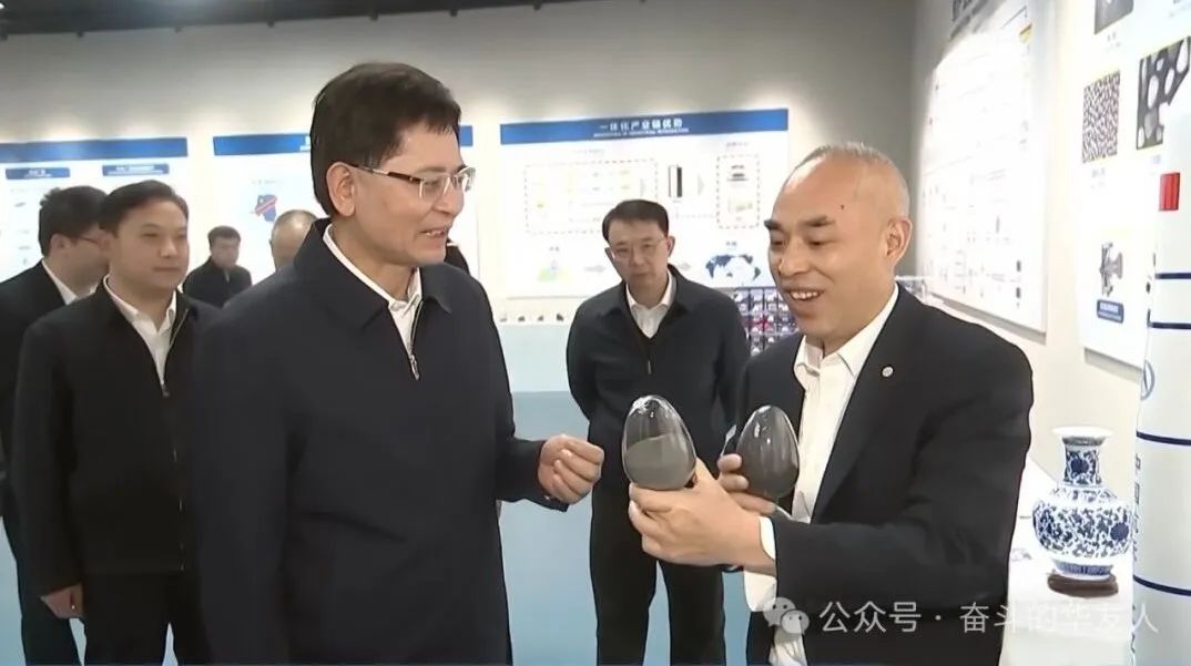 3月14日,广西壮族自治区主席蓝天立带队莅临华友广西园区宣讲全国两会精神并开展调研,广西区域管理中心总经理黄孔森代表公司热情接待。