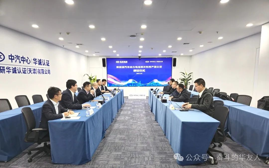 颁证仪式由新能源汽车动力电池梯次利用产品认证技术委员会秘书处、中汽研华诚认证(天津)有限公司(以下简称“华诚认证”)主办。