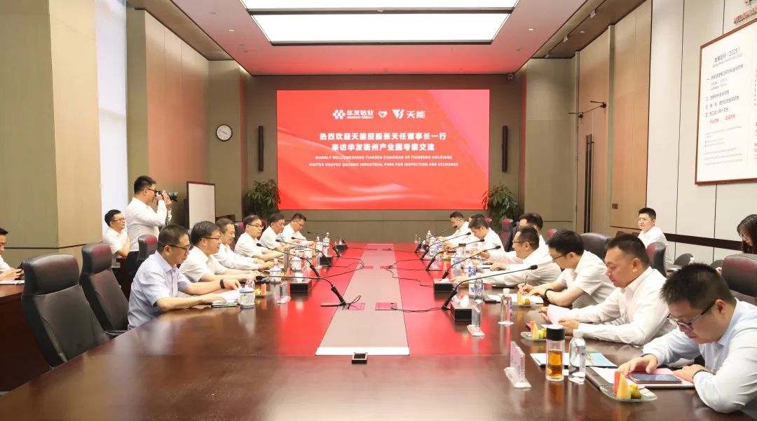 6月6日,天能控股集团董事长张天任到访华友衢州产业园参观交流,衢州市委常委、常务副市长周卫兵陪同参观,受华友钴业董事长陈雪华委托,集团副总裁、衢州区域管理中心总经理方圆代表公司热情接待。