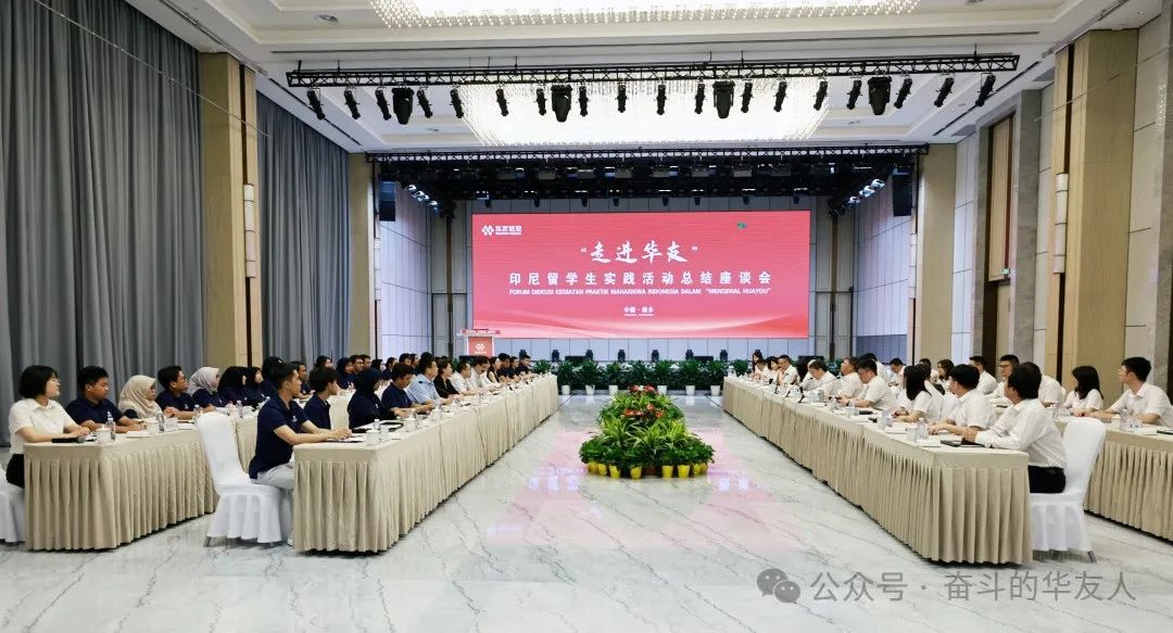 7月13日,此次活动总结座谈会在集团总部召开。东北大学国际教育学院院长于福晓、冶金学院副院长姜鑫、各位教授老师;华友钴业董事长陈雪华、公司总部职能单位主要干部、26名印尼留学生参加。