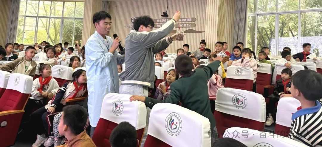 前驱体研究院的杨蒙蒙通过碘伏变色和气球变大的小实验,向三年级学生讲解了化学反应中的氧化还原反应和复分解反应,引导同学们发现身边的科学。