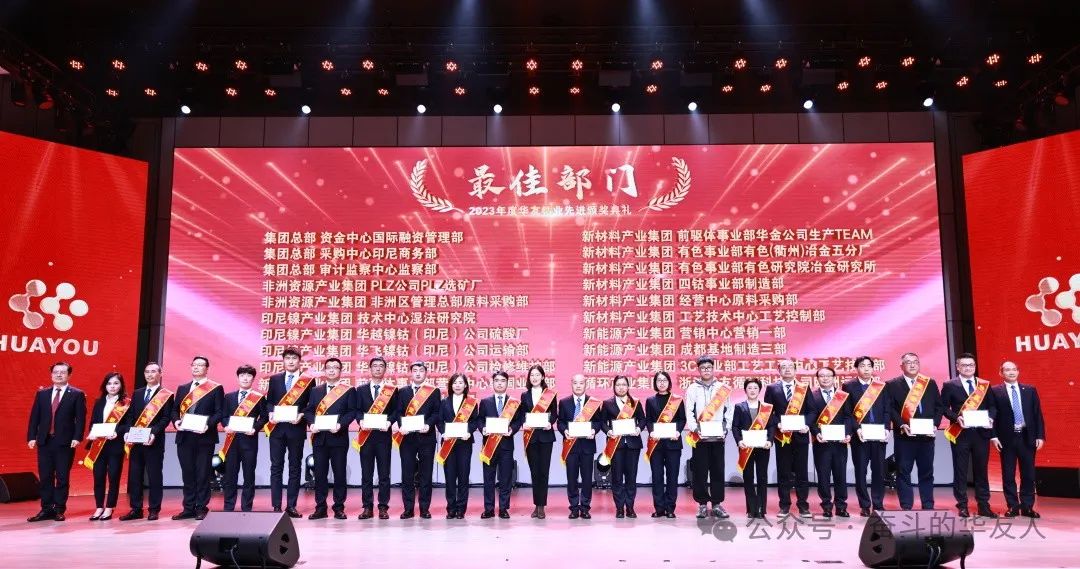 1月19日,以“梦想 奋进 荣耀”为主题的华友钴业2023年度先进颁奖典礼在集团总部举行。