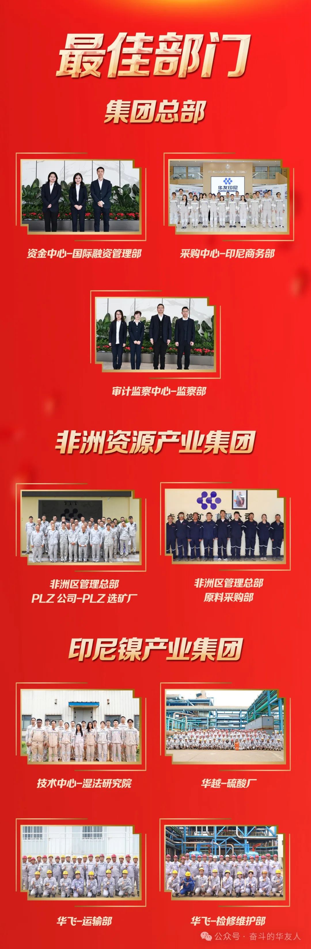 你们是海内外奋斗华友人的杰出代表,你们是自强不息、追求卓越华友精神的忠实践行者;披荆斩棘、逢山开路,你们匆忙的脚步踏遍了祖国的春夏秋冬,你们走过了蚂蚁包丛生的旱季雨季,吹过了印尼海岛赤道附近的海潮热浪,尝过了异国他乡的酸甜苦辣,依旧精神抖擞,你们用奋斗的脚步丈量着华友事业的广度,你们无愧于华友年度人物的至上荣耀!