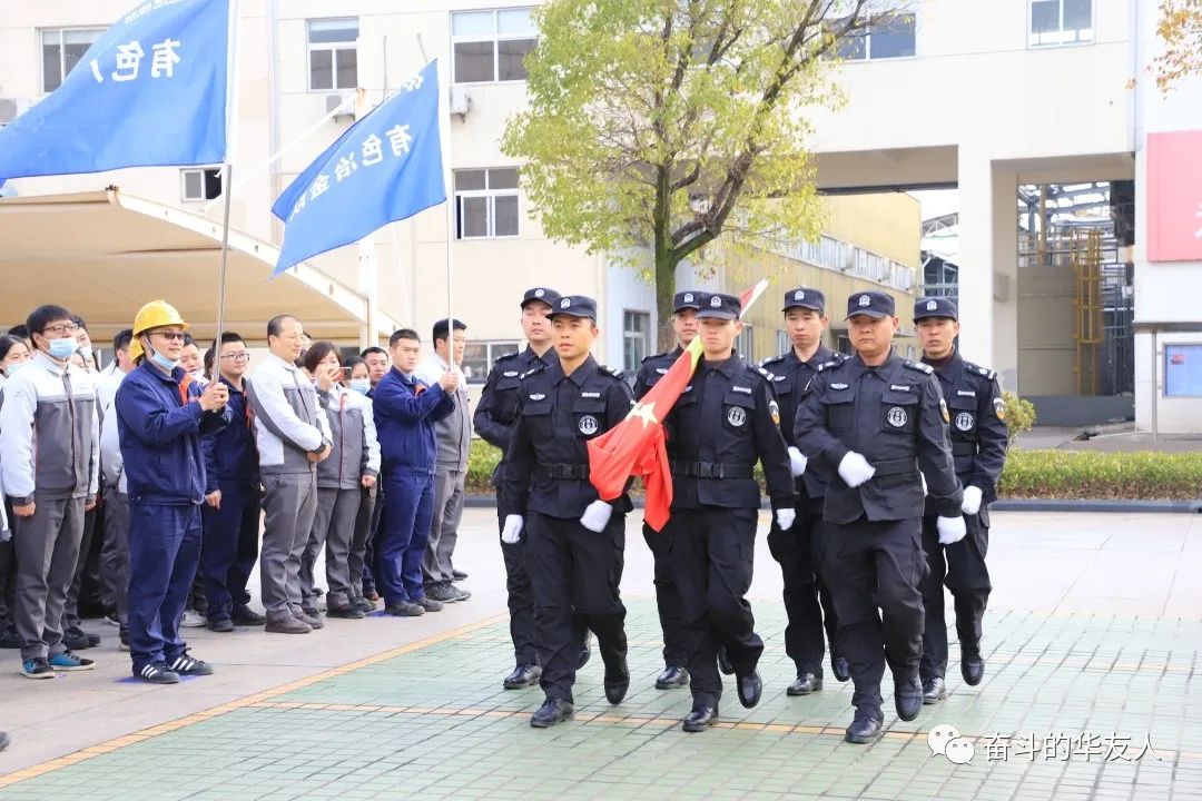 踏着铿锵的步伐,华友警卫队迎面而来。“现在请全体立正、升国旗、奏国歌。”升旗仪式礼毕后,只听“全体都有、向右转、起步跑!”,一声令下,奔跑活动正式拉开序幕,十二支队伍齐齐向前、全速奔跑。大家你追我赶,秩序井然。