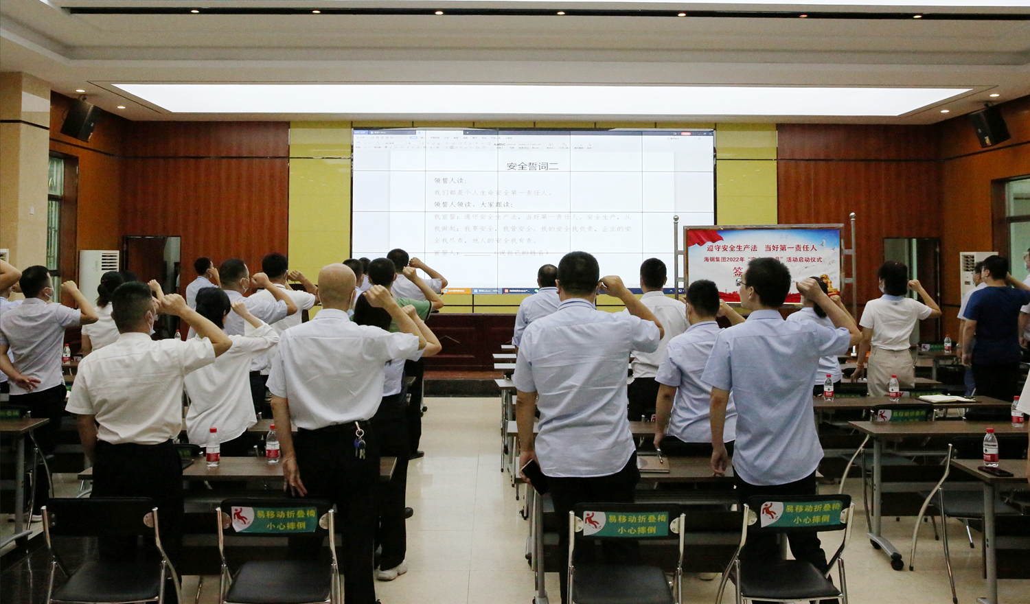 6月8 日下午,金年会登录手机集团在昌江总部召开2022年“安全生产月”活动动员会暨启动仪式。公司党委书记、安委会主任周湘平,总经理夏亚斌,副总经理李平丞出席会议。