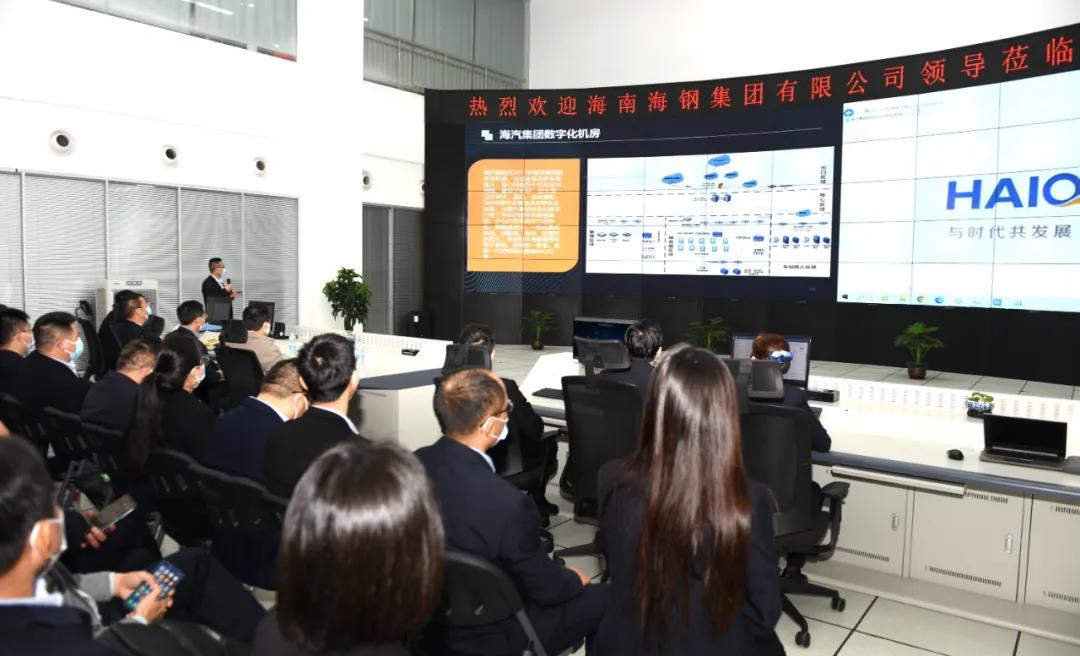 夏亚斌一行参观了海汽数字化运营中台、智慧海汽综合出行等平台,详细了解了海汽集团在数字化转型方面的工作举措,双方针对下一步数字化转型思路和平台构想进行了深入探讨。�