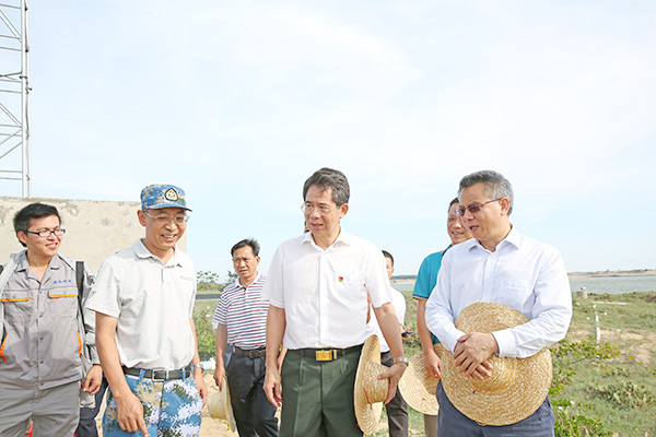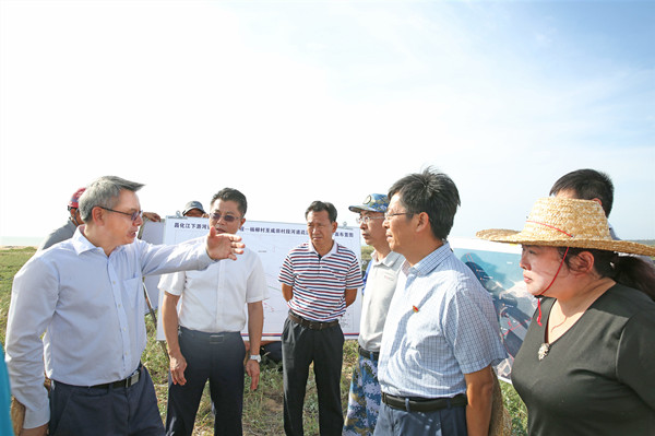 2019年7月12日下午,海南省副省长刘平治率调研组到昌化江下游河口段过河园岛施工现场开展“不忘初心,牢记使命”调研。