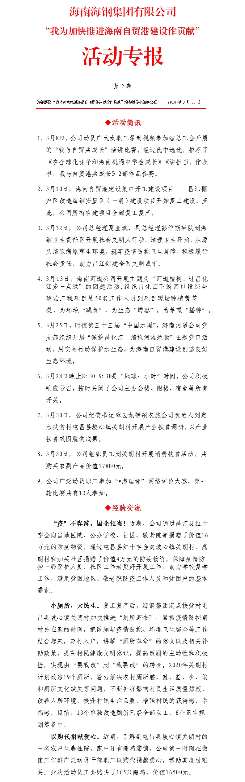 金年会登录手机集团“我为加快推进海南自贸港建设作贡献”活动专报第2期