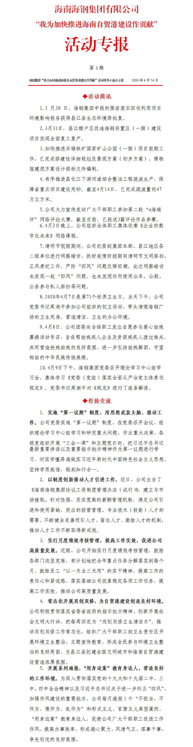 金年会登录手机集团“我为加快推进海南自贸港建设作贡献”活动专报第3期