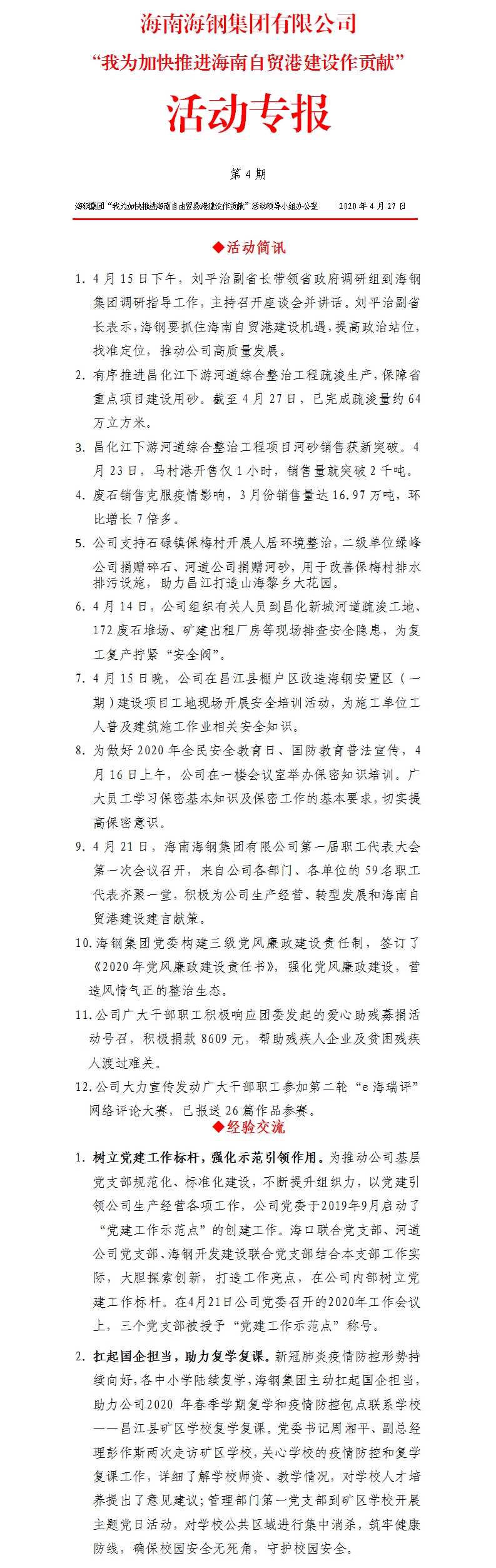 金年会登录手机集团“我为加快推进海南自贸港建设作贡献”活动专报第4期